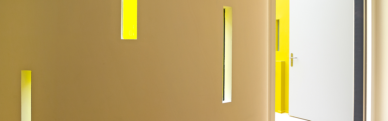 Entscheidend sind dabei vor allem die Türen (T30 ≙ 30min; T60 ≙ 60min; T90 ≙ 90min). Sie können die Anforderungen nur in Kombination mit der entsprechenden Wandstärke erfüllen. Zudem spielen die Übergänge zwischen zwei Elementen eine wichtige Rolle, etwa zwischen einer Leichtbauwand und Massivbauteilen. Diese verzögern die Verbreitung des Feuers und verschaffen den Menschen so wertvolle Zeit, das Gebäude zu verlassen. In öffentlichen Gebäuden bietet es sich oft an, die Schutzfunktionen zu kombinieren – etwa für Brand- und Schallschutz.