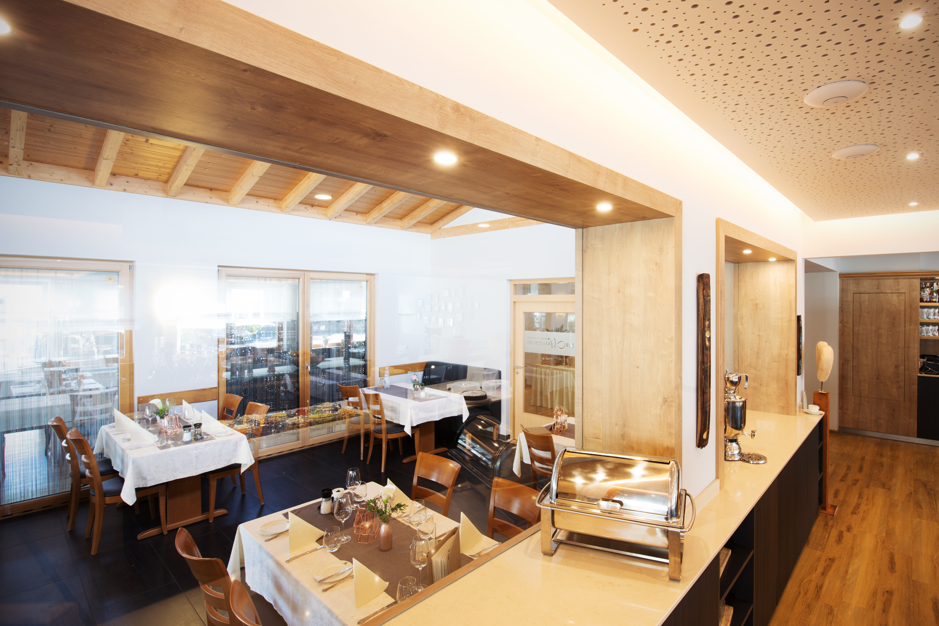 Für eine angenehme und helle Gesprächsatmosphäre in den Speisesälen sorgen moderne Akustikdecken. Diese senken die Nachhallzeit und verbessern die Raumakustik. Damit unterhalten sich die Gäste auch im Hochbetrieb entspannt, ohne durch Gespräche am Nachbartisch abgelenkt zu werden.