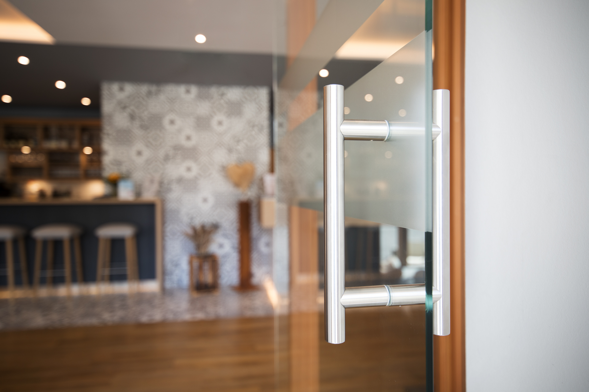 Auch der Zugang zum Zimmerbereich ist neugestaltet: Durch die sorgfältig angebrachten Kantenschutzprofile fügen sich Wand und Durchgangstür nahtlos ineinander.