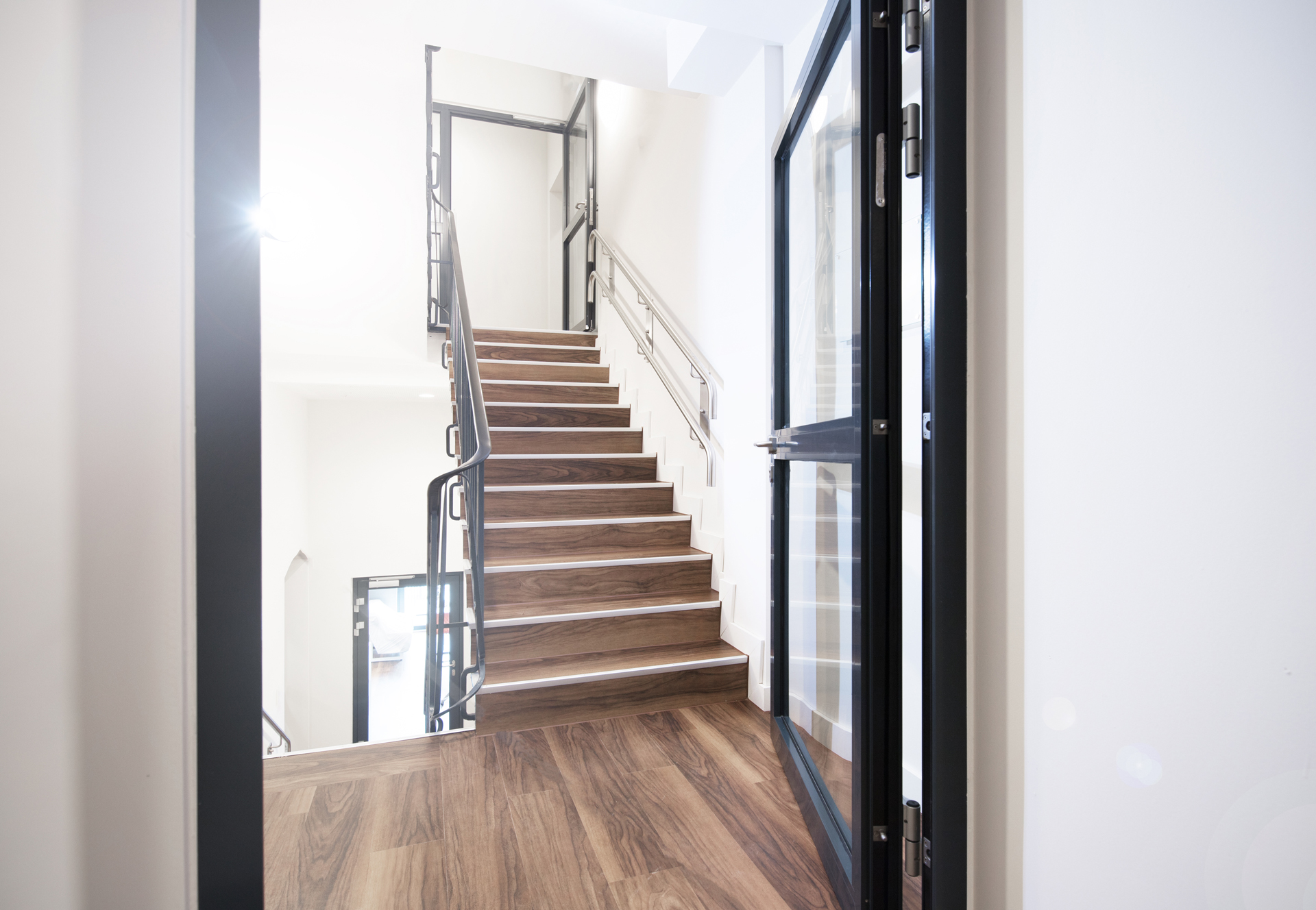 MHW stattete die Räume mit Metallbau-Rahmenglas-Feuerschutztüren von Novoferm aus. Um im Ernstfall eine angemessene Sicherheit bieten zu können, wurden Feststellanlagen von GEZE mit integriertem Rauchmelder eingebaut. Diese schließen die Türen im Brandfall automatisch, um die Luftzufuhr zu unterbrechen und das Feuer vor weiterer Ausbreitung zu hindern. Auch die Verbreitung von Rauch und giftigen Dämpfen kann dank der zertifizierten Rauchschutztüren minimiert werden.