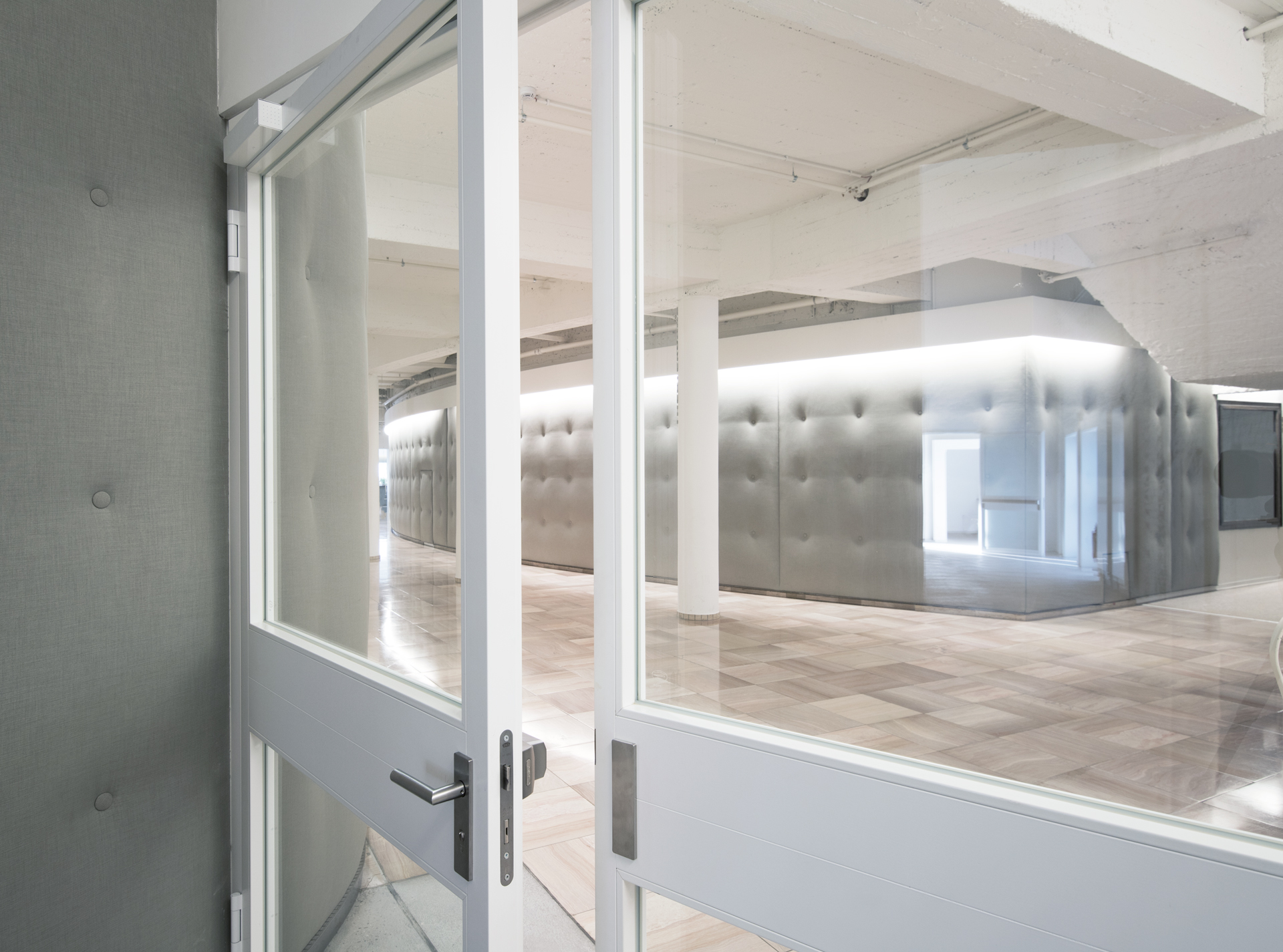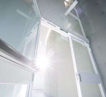 Im Rahmen des Umbaus erhielt MHW den Auftrag, die Türelemente im Innenbereich zu erneuern. Zum Einsatz kamen Spezialtüren des Herstellers Schörghuber, die zum einen Barrierefreiheit durch Überbreite und zum anderen Brandschutz bieten. Die eingebauten Türen sind in der Regel geöffnet und schließen bei Rauchentwicklung durch die integrierten Feststellanlagen automatisch. Eine Funktion, die bei Personenansammlungen im Gebäude besonders wichtig ist, damit sich ein Brand nur langsam ausbreiten kann.
