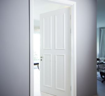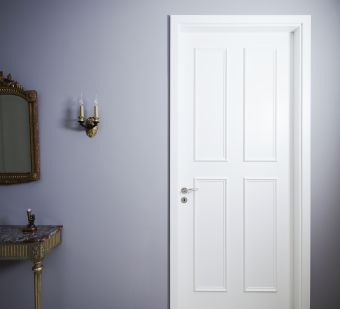 In eine der Wohnungen baute MHW Produkte des Spezialtür-Experten Schörghuber ein. Die Türen im Innenraum sind in Überhöhe und aus Massivholz gefertigt sowie mit Beschlägen aus Edelstahl versehen. Somit passen sie sich dem Vintage-Flair der Wohnung an. Die helle Lackierung der Kassettentüren bildet einen Kontrast zur dunkelgrauen Wandfarbe und hebt dadurch die Türen optisch hervor.